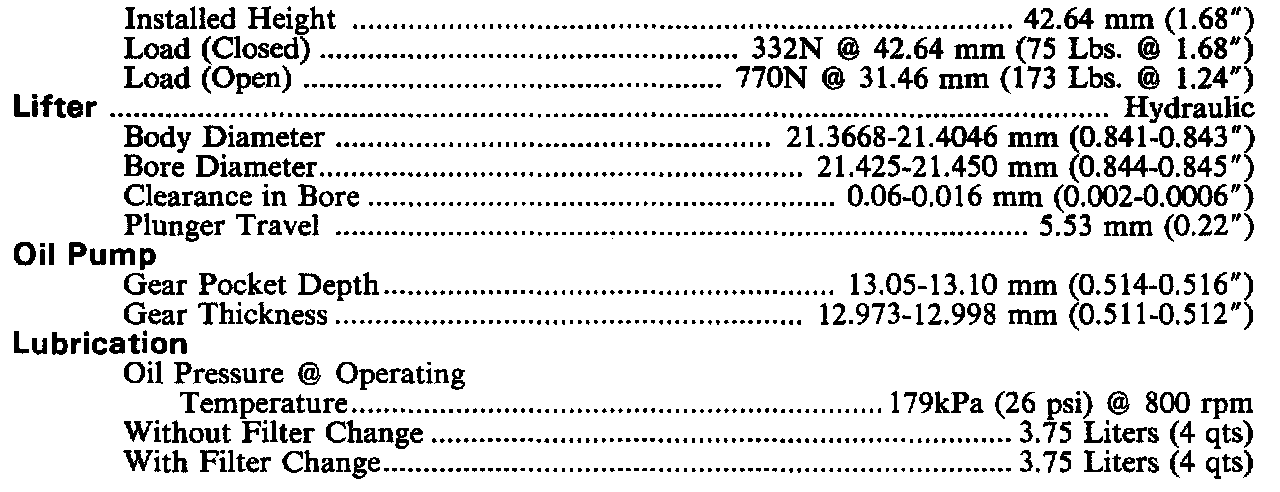 Engine Specifications: