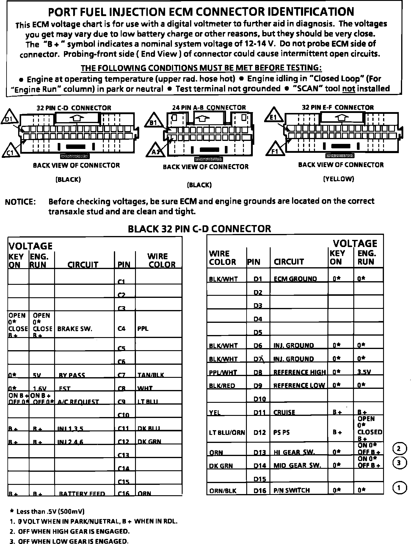 ECM Connector Terminal Identification And Voltage Specification (Part 1 Of 2):