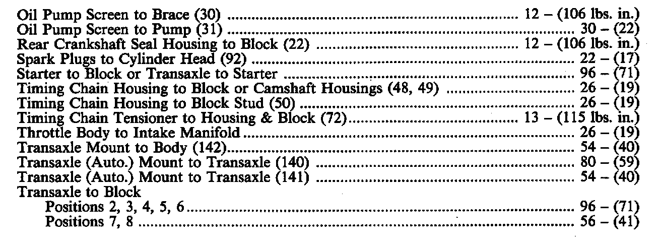 Torque Specifications:
