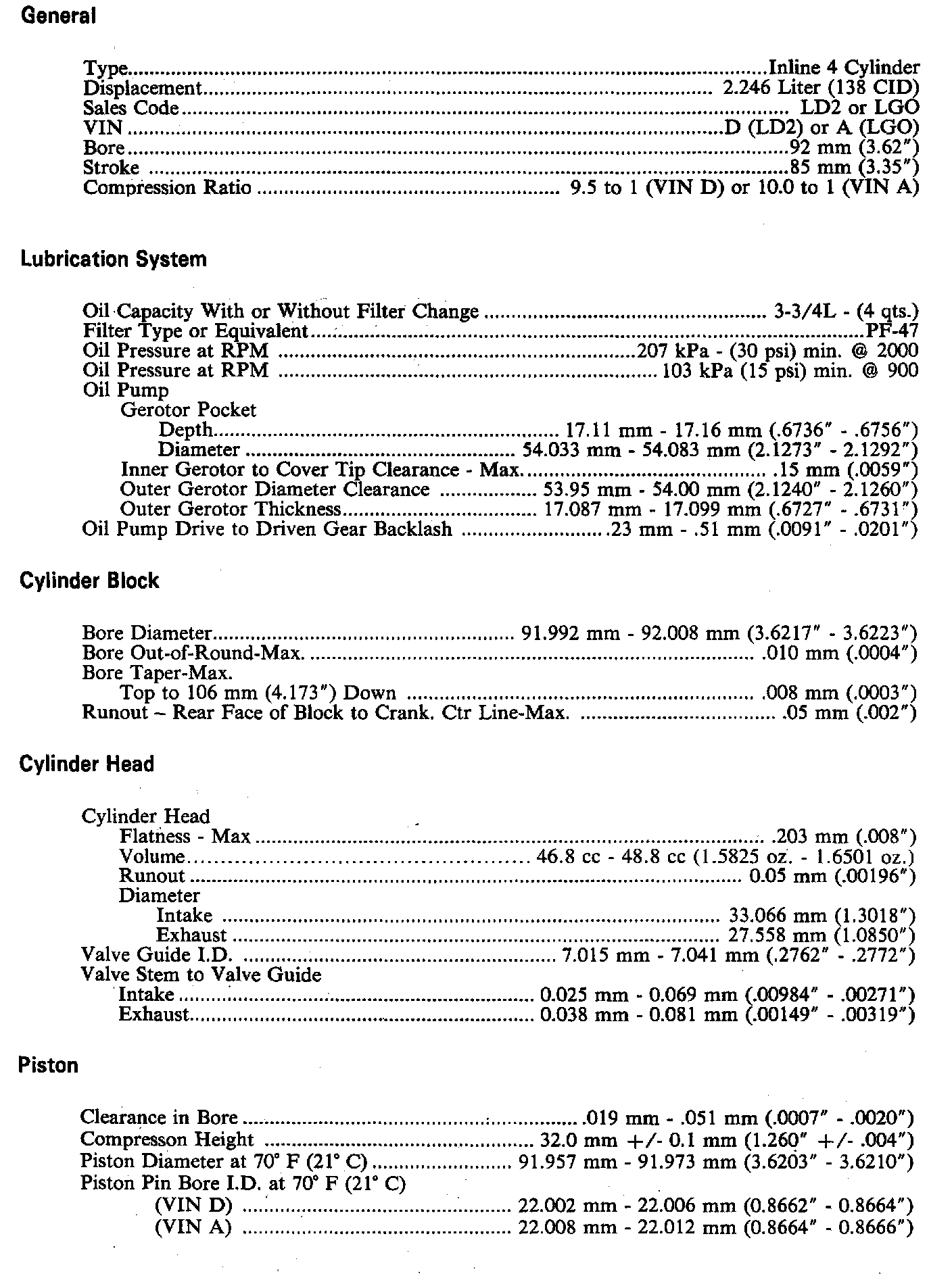 Cutlass L4-138 2.3L VIN D FI