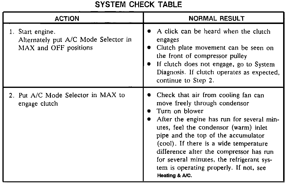 ^ Use the illustrated System Check Table as a guide to normal operation of Compressor Controls.