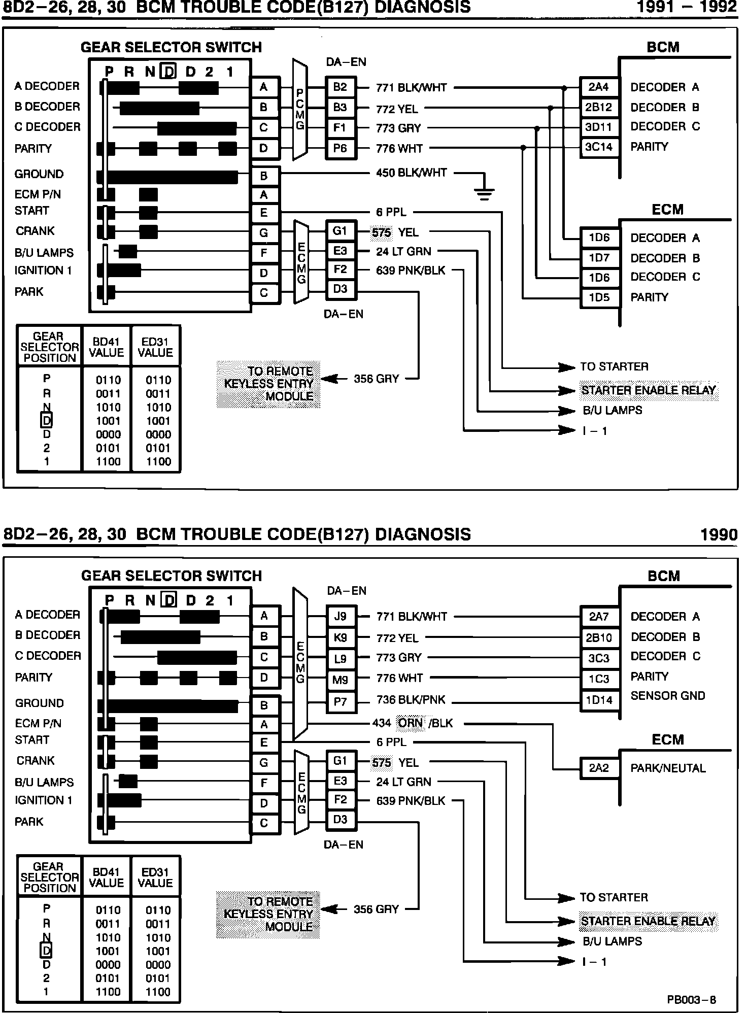 The wiring diagrams that appear in this bulletin replace wiring diagrams that appeared in the following Toronado Service Manuals for BCM trouble code diagnosis, code B127: