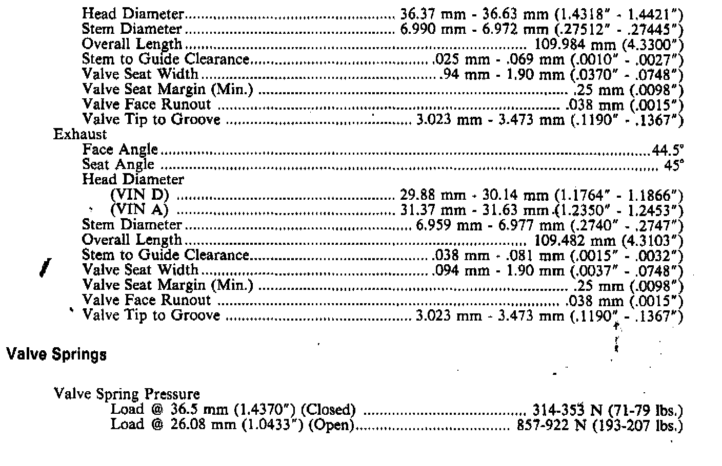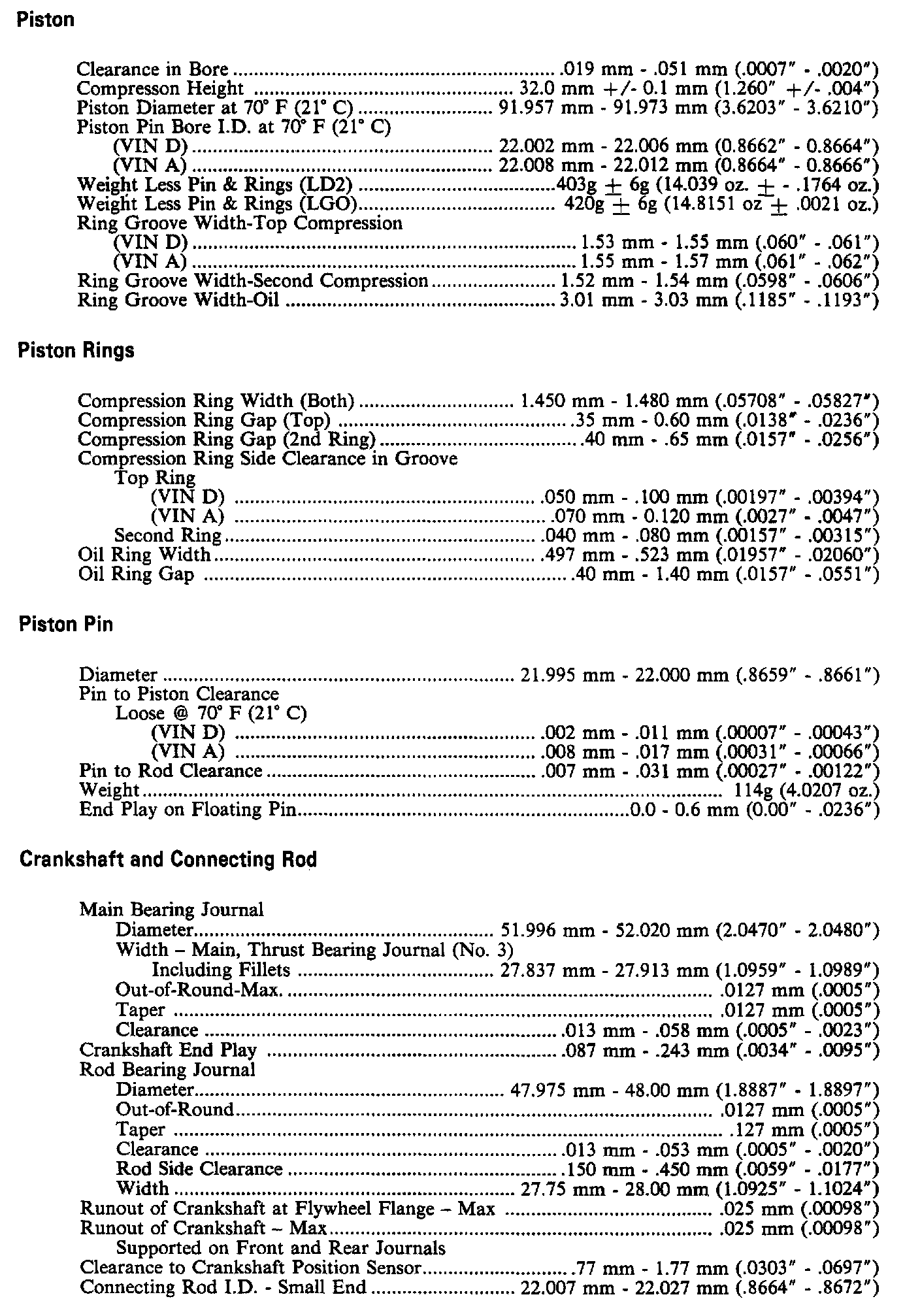 Continued Engine Specifications: