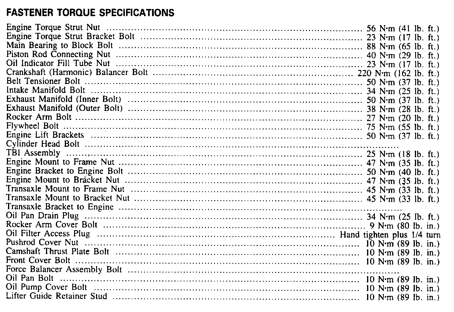 Torque Specifications: