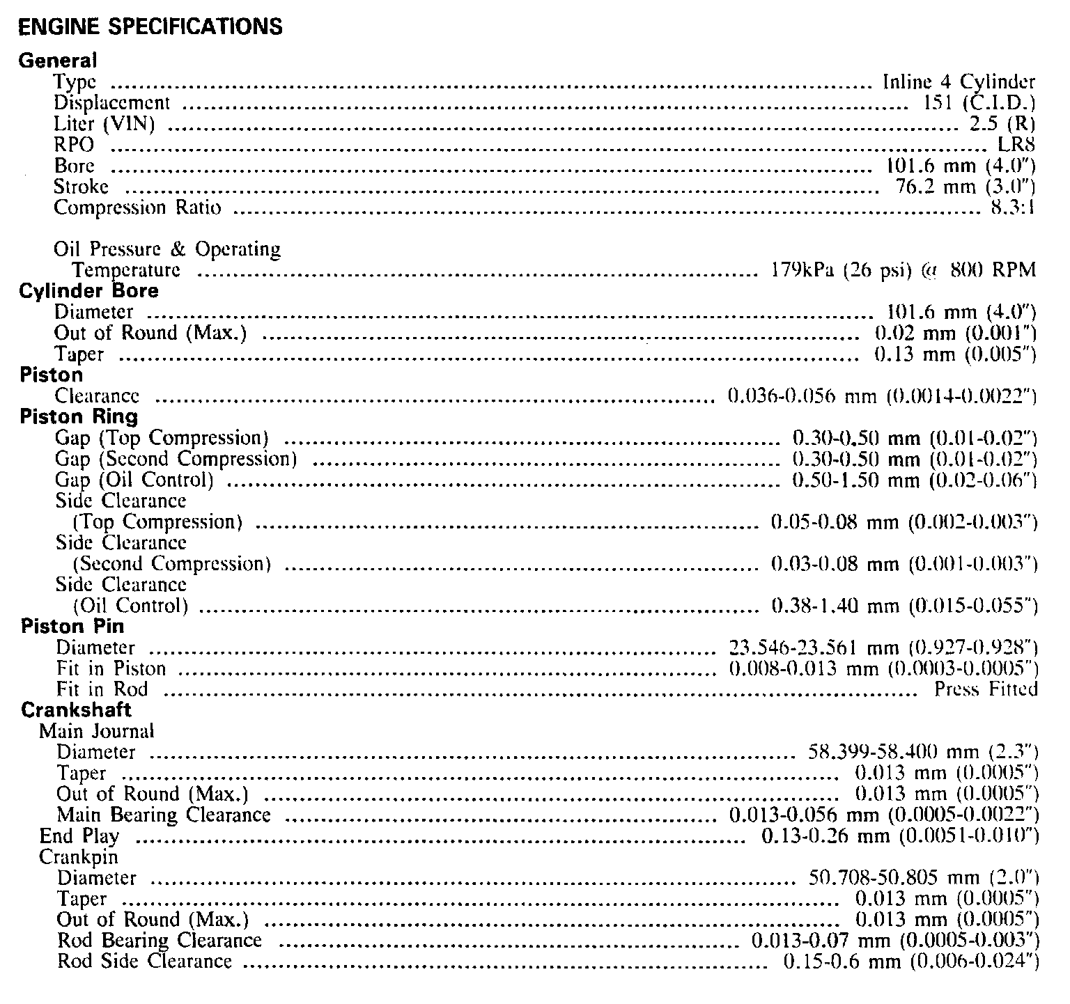 Continued Engine Specifications: