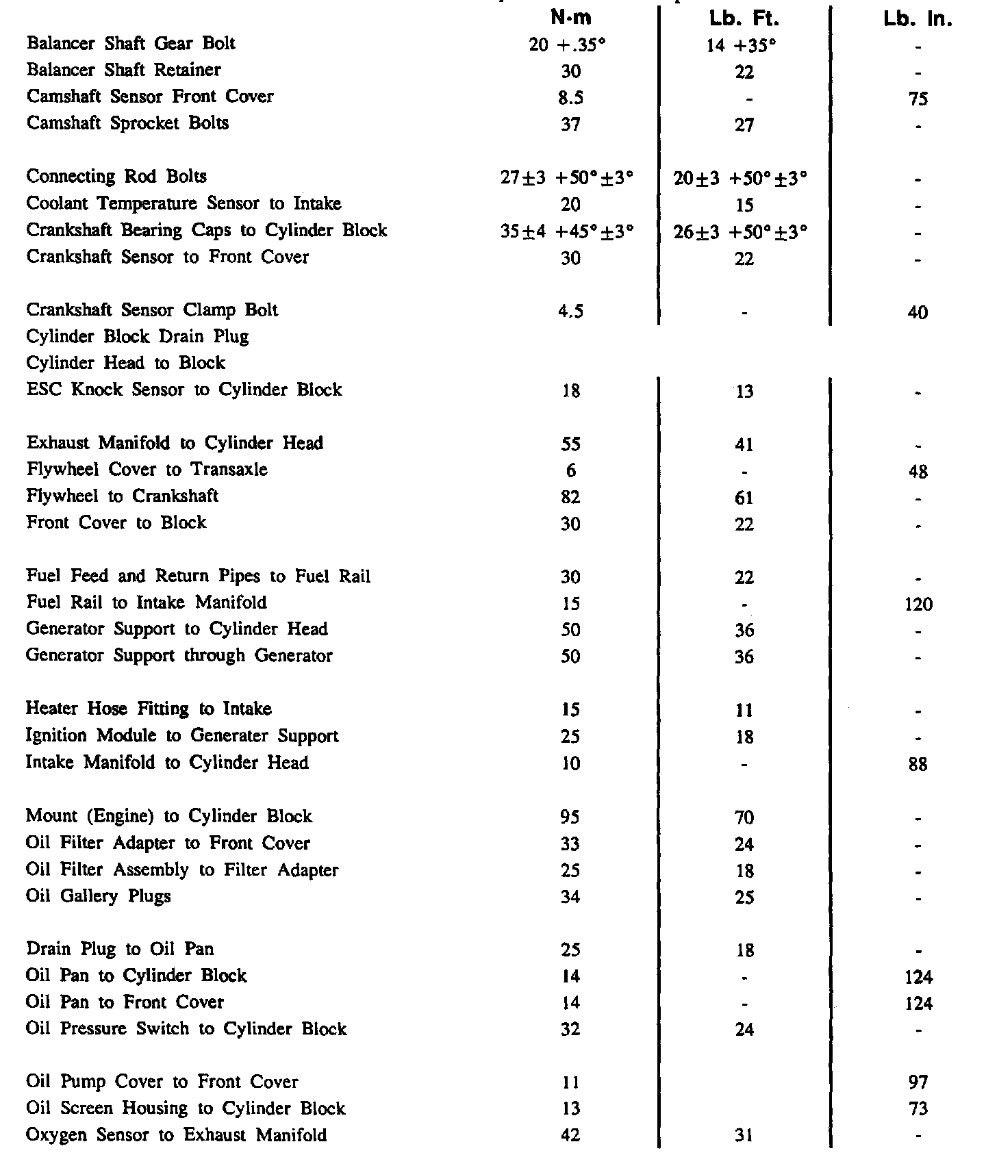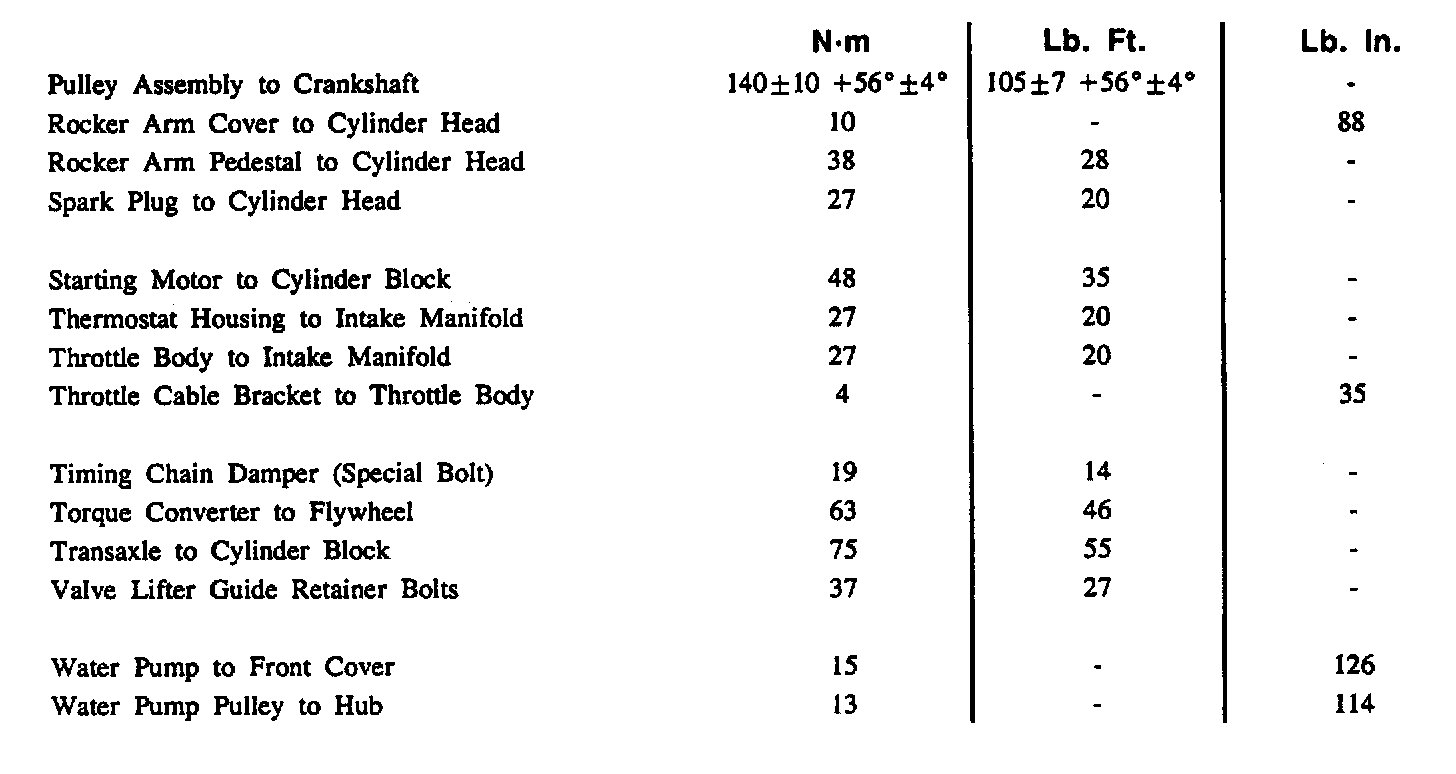 Torque Specifications: