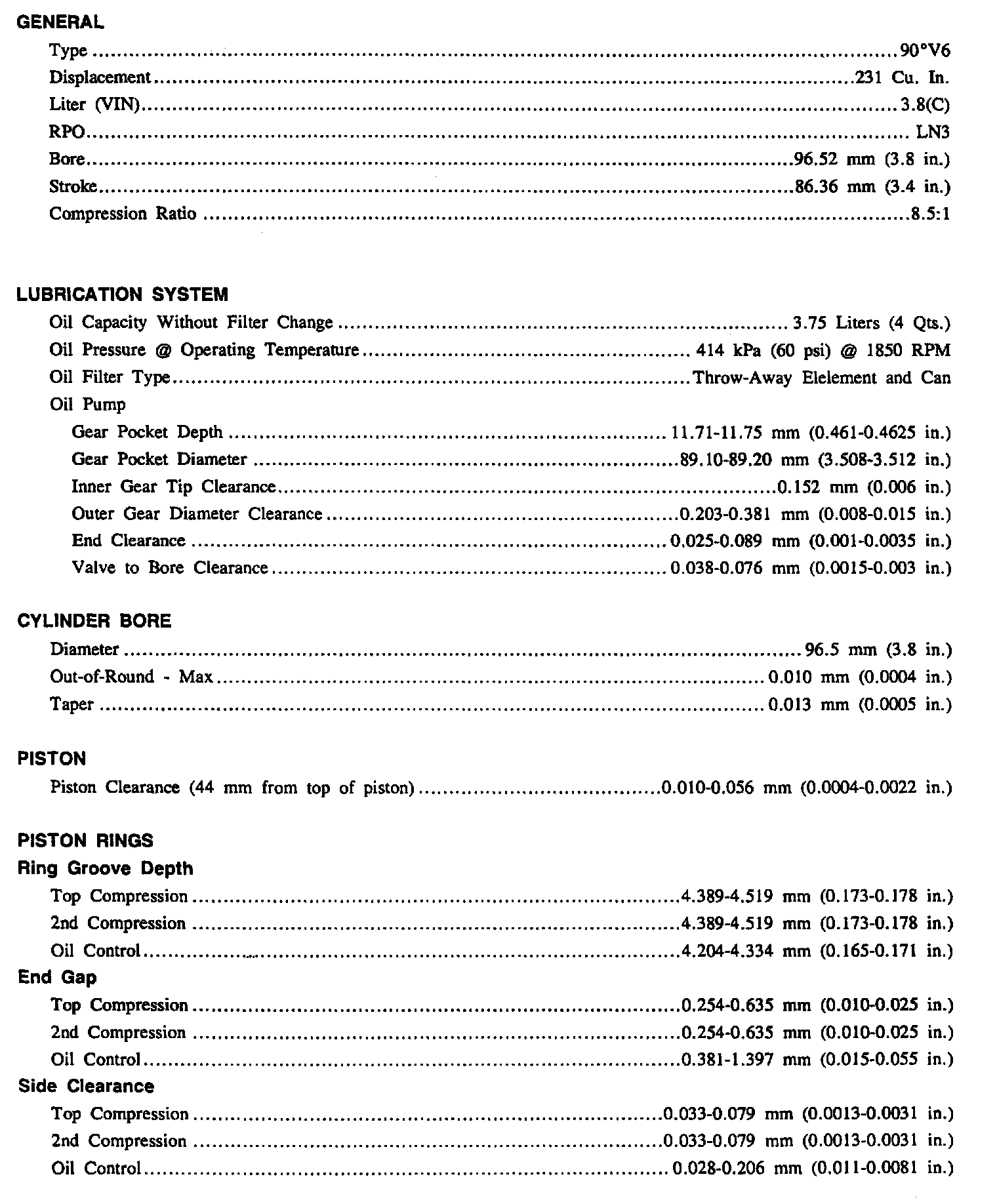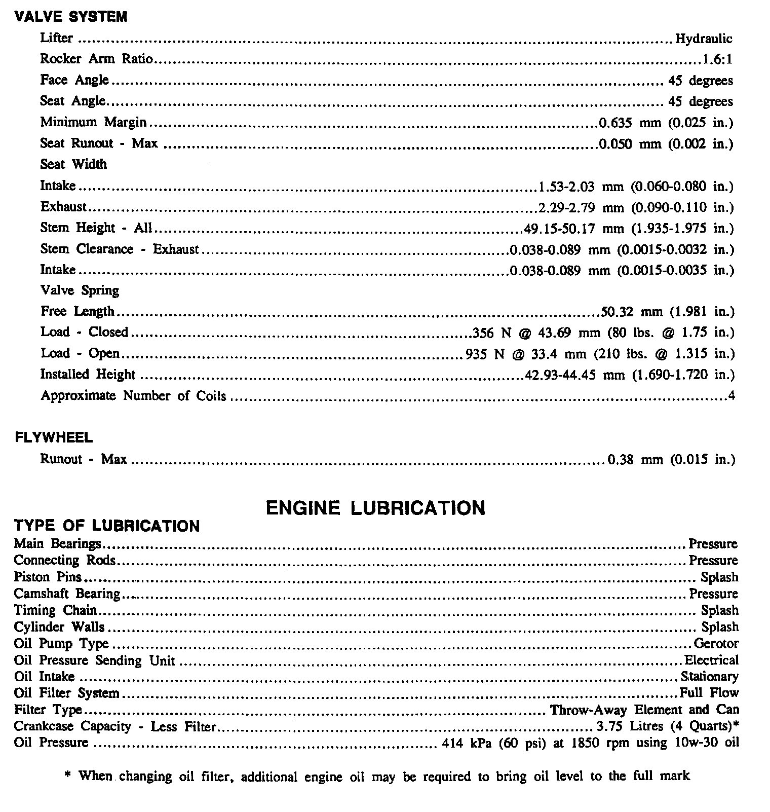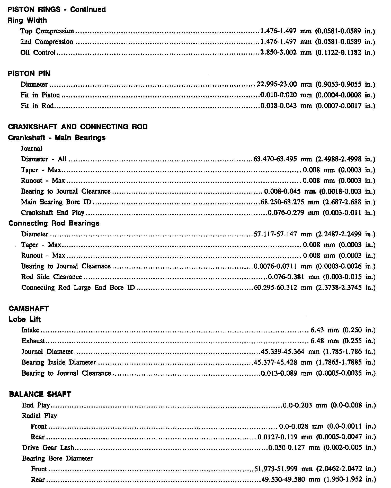 Continued Engine Specifications: