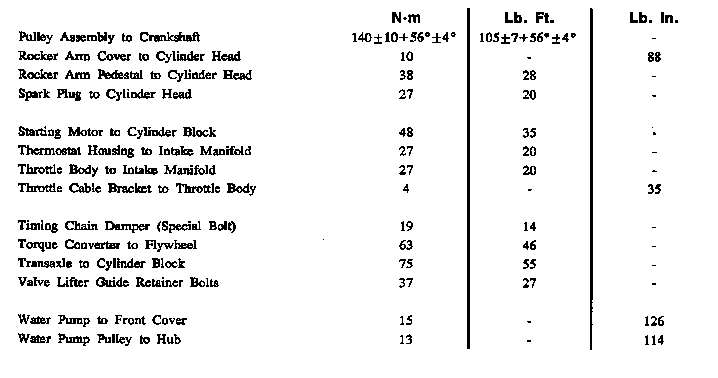 Torque Specifications:
