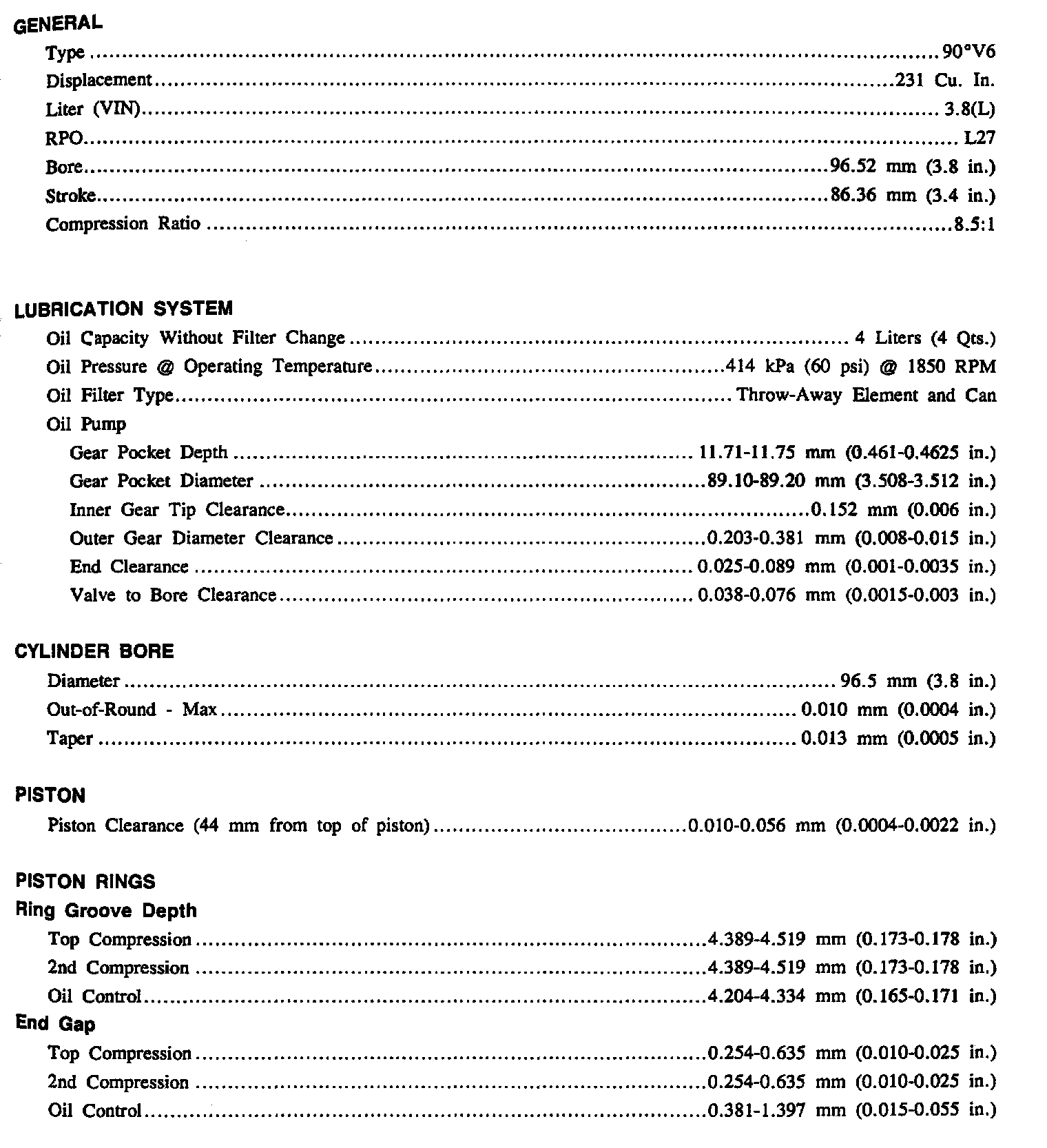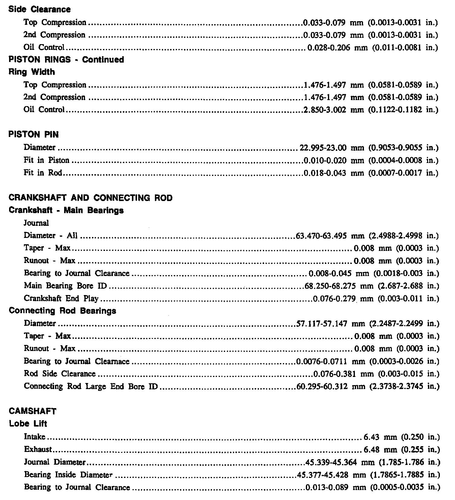Continued Engine Specifications: