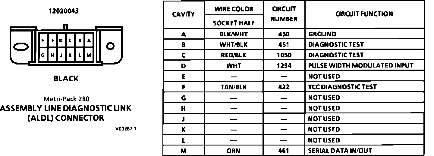 Assembly Line Diagnostic Link (ALDL) Connector Face: