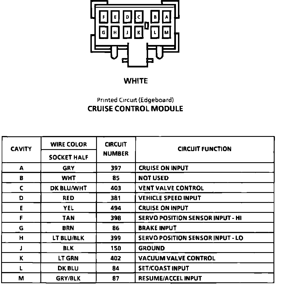 Cruise Control Module Connector Face: