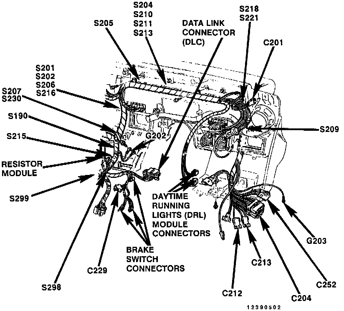 The Data Link Connector is located below LH side of I/P, near steering column.