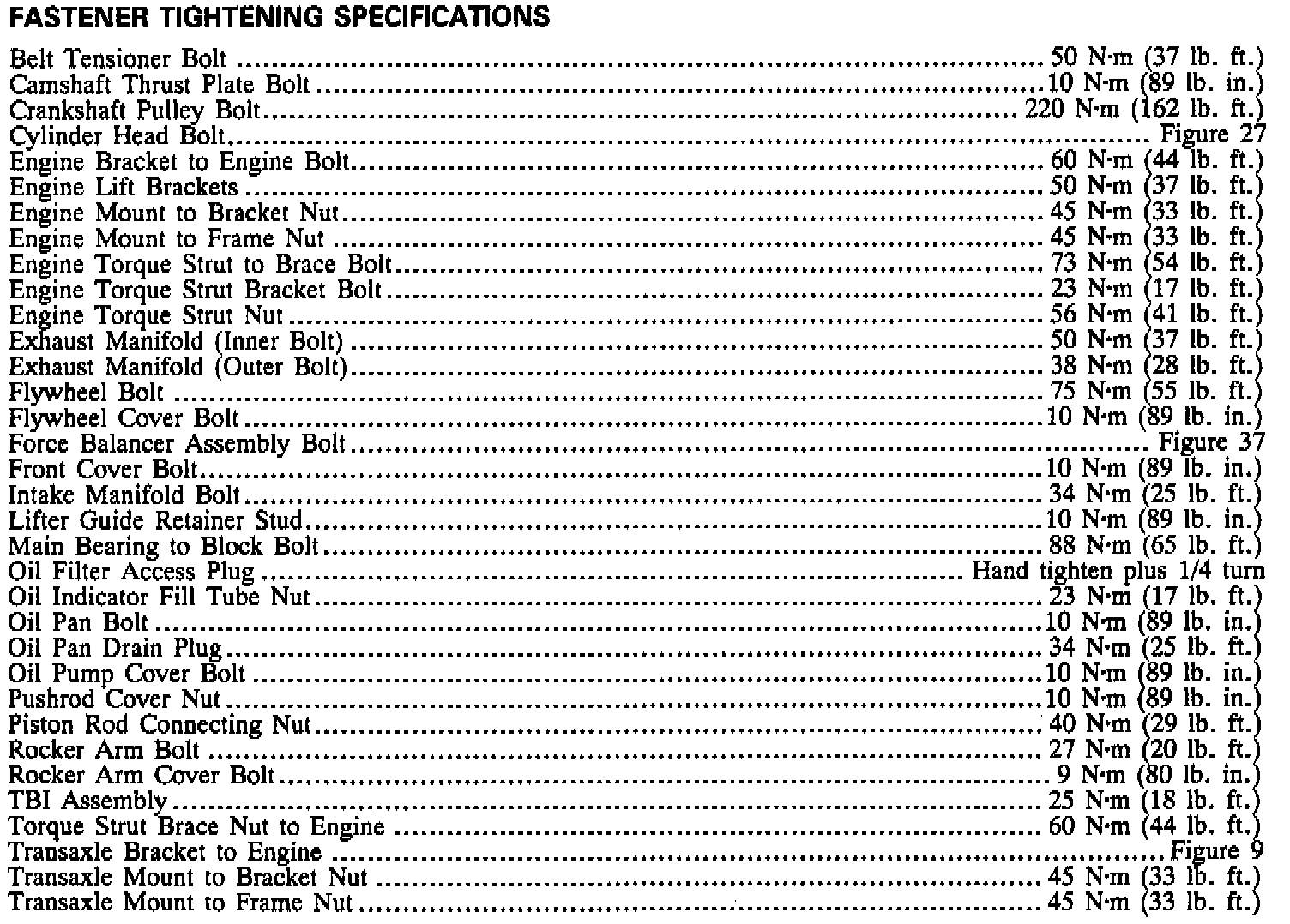 Torque Specifications: