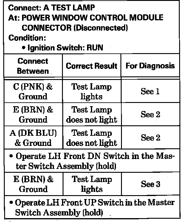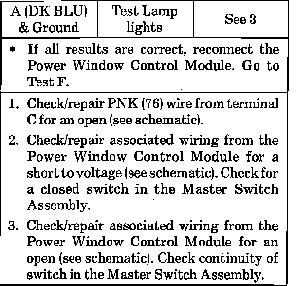 Test C: Power Window Control Module Test: