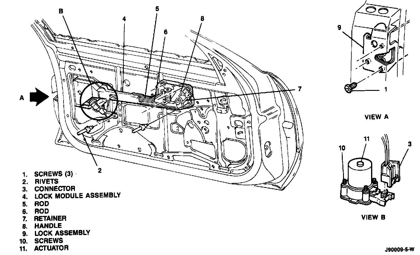 4. Rivets securing lock module assembly to door using 3116 mcli x 1/4 inch peel type rivets.