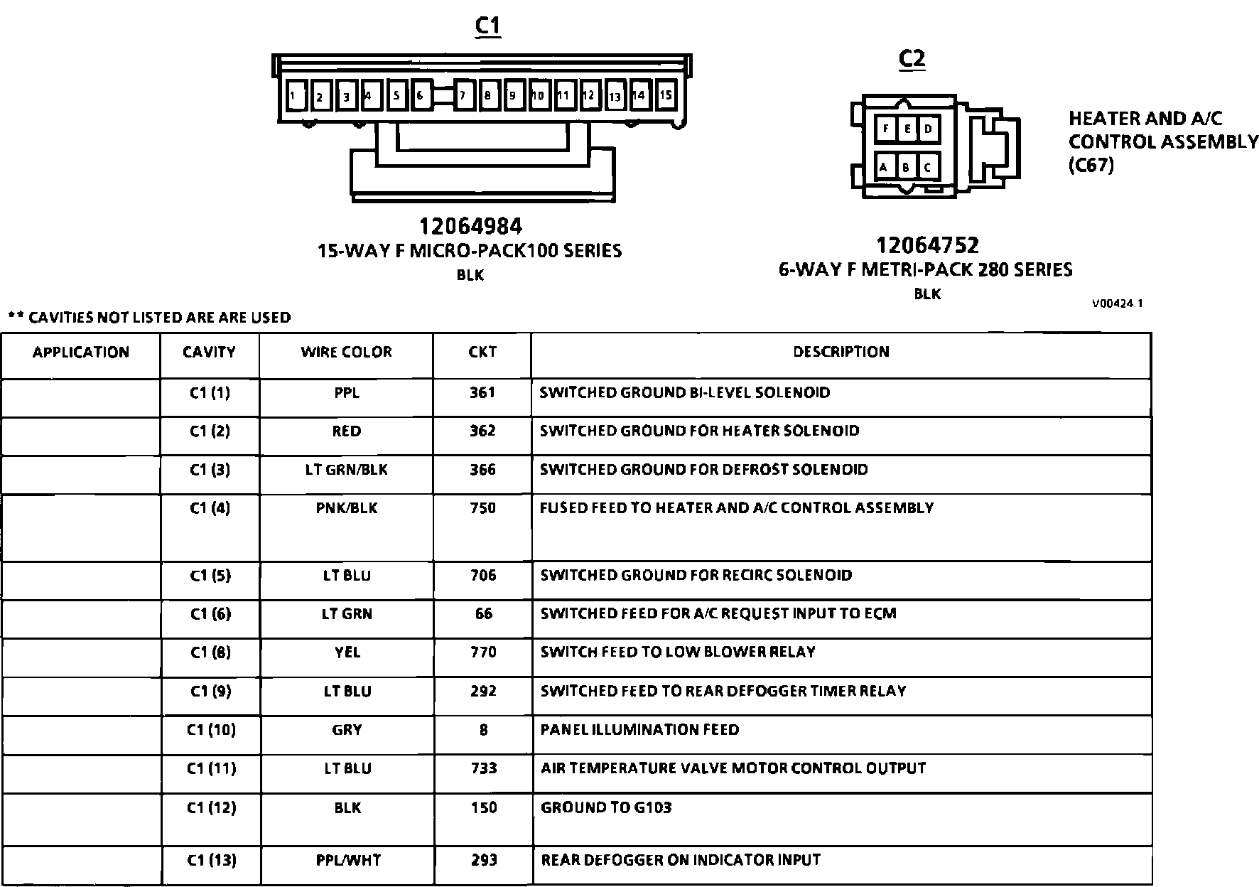 Heater And A/C Control Assembly Connector Face: