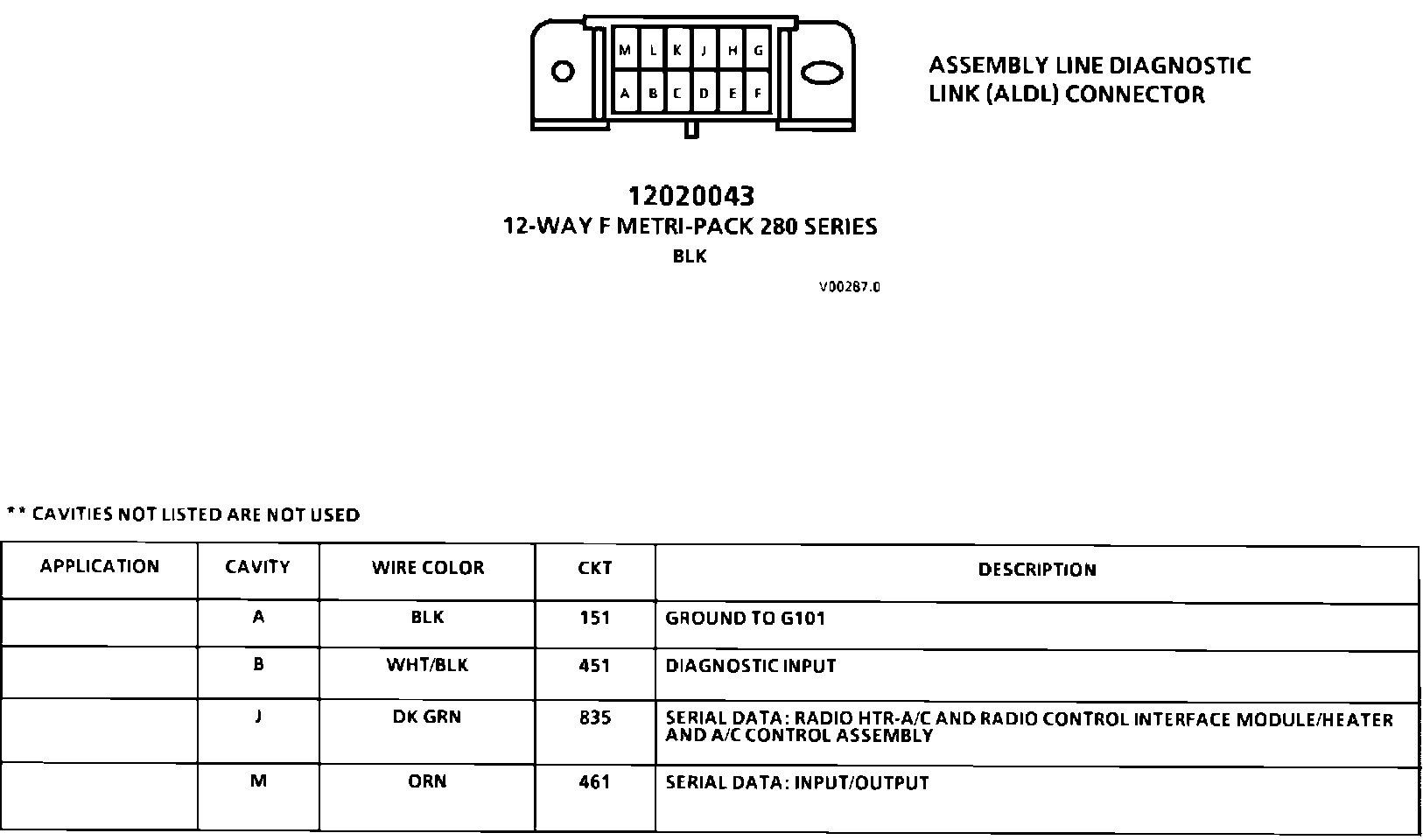 Assembly Line Diagnostic Link (ALDL) Connector: