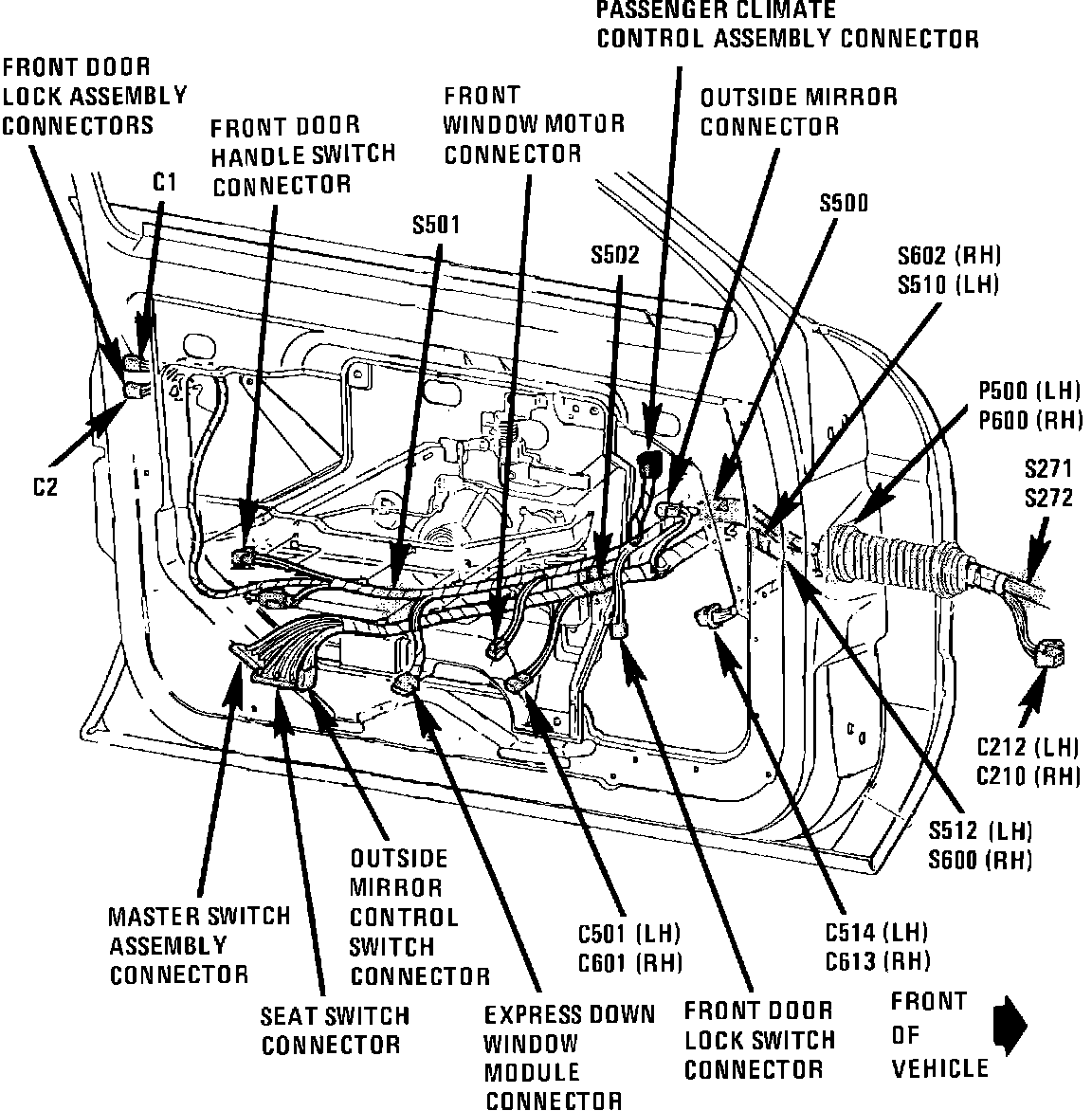Component Location View. LH Front Door (RH Similar):