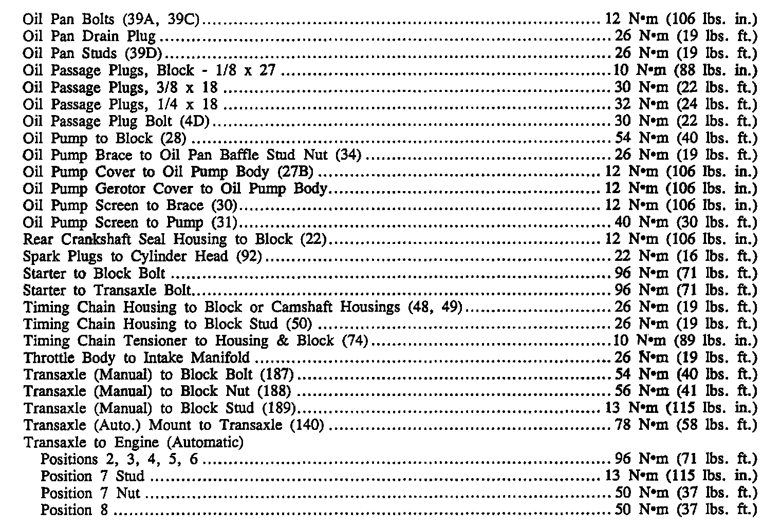 Continued Torque Specifications: