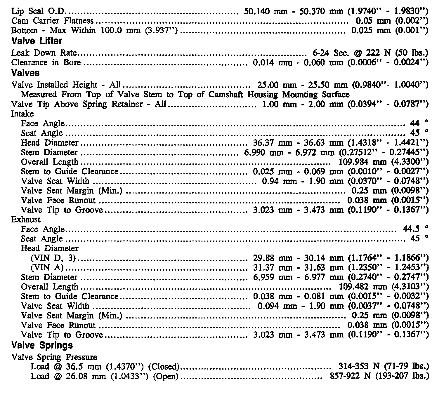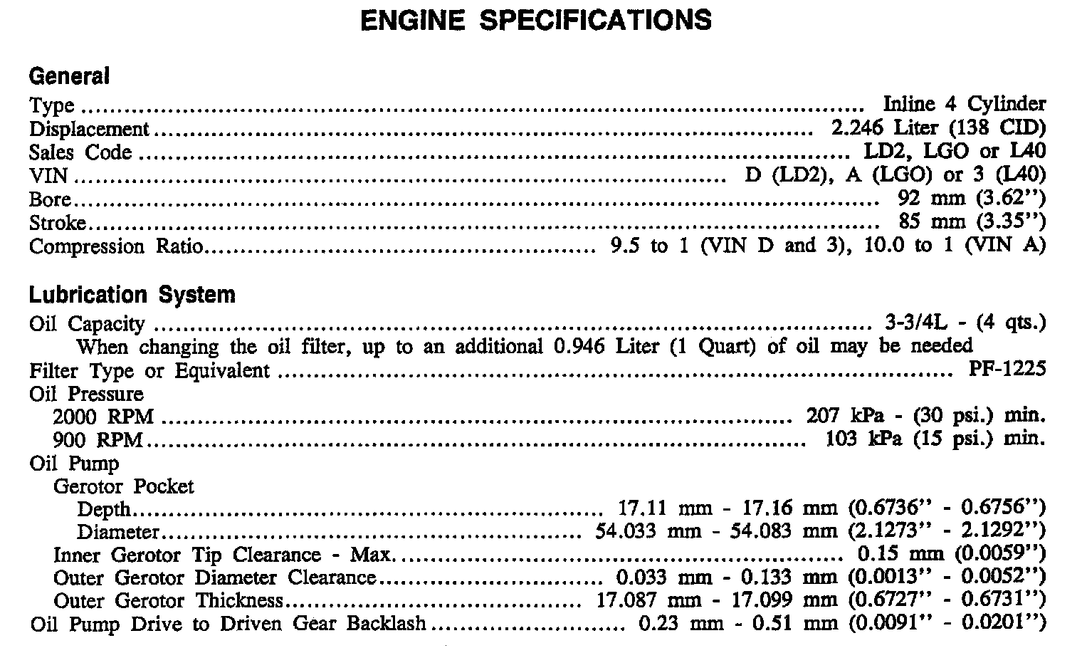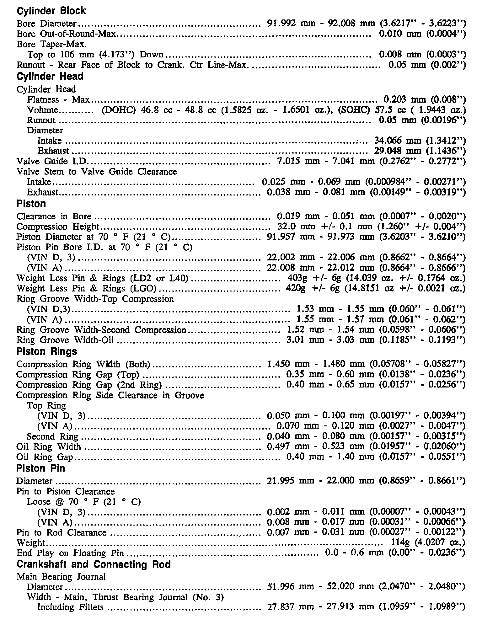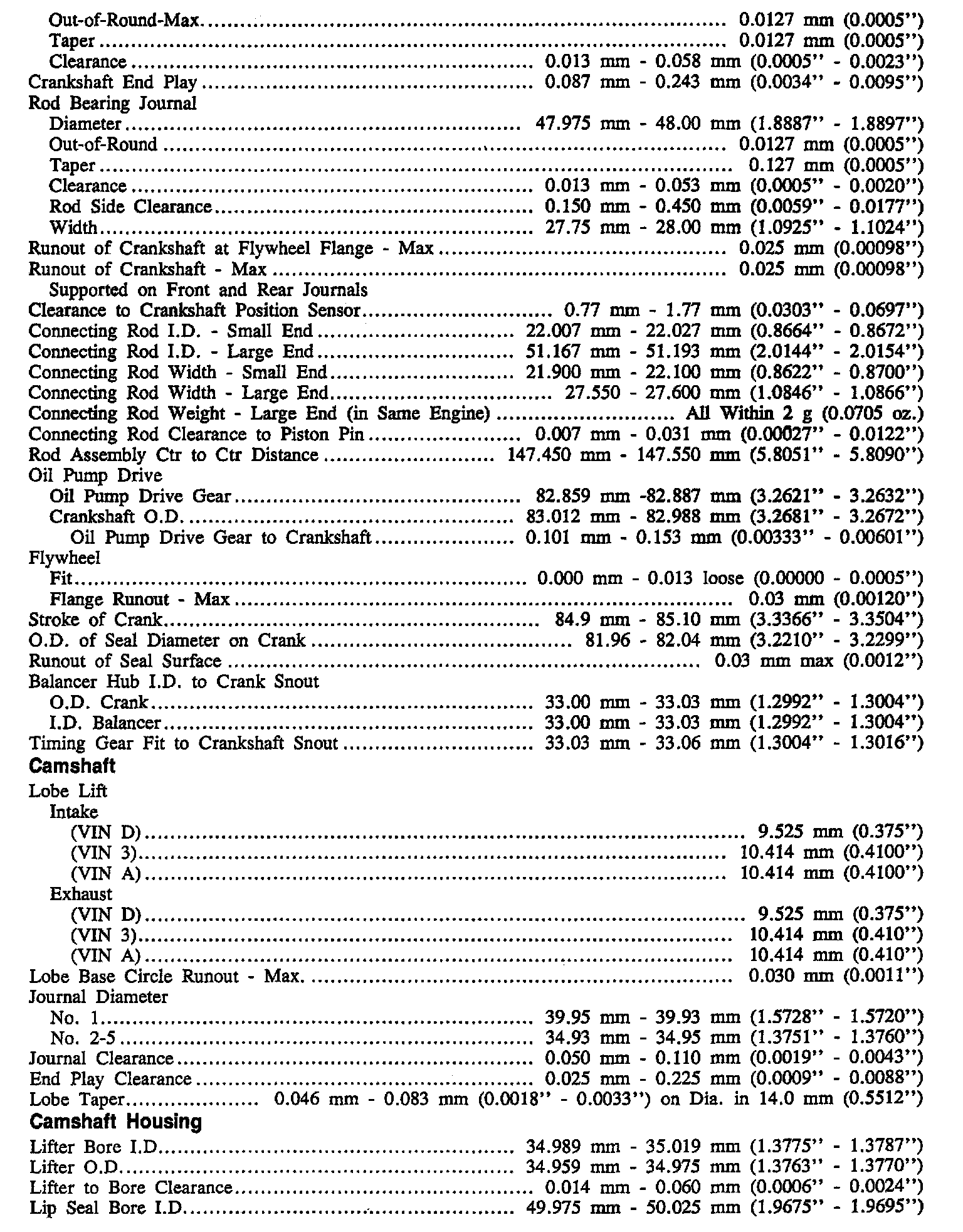 Continued Engine Specifications: