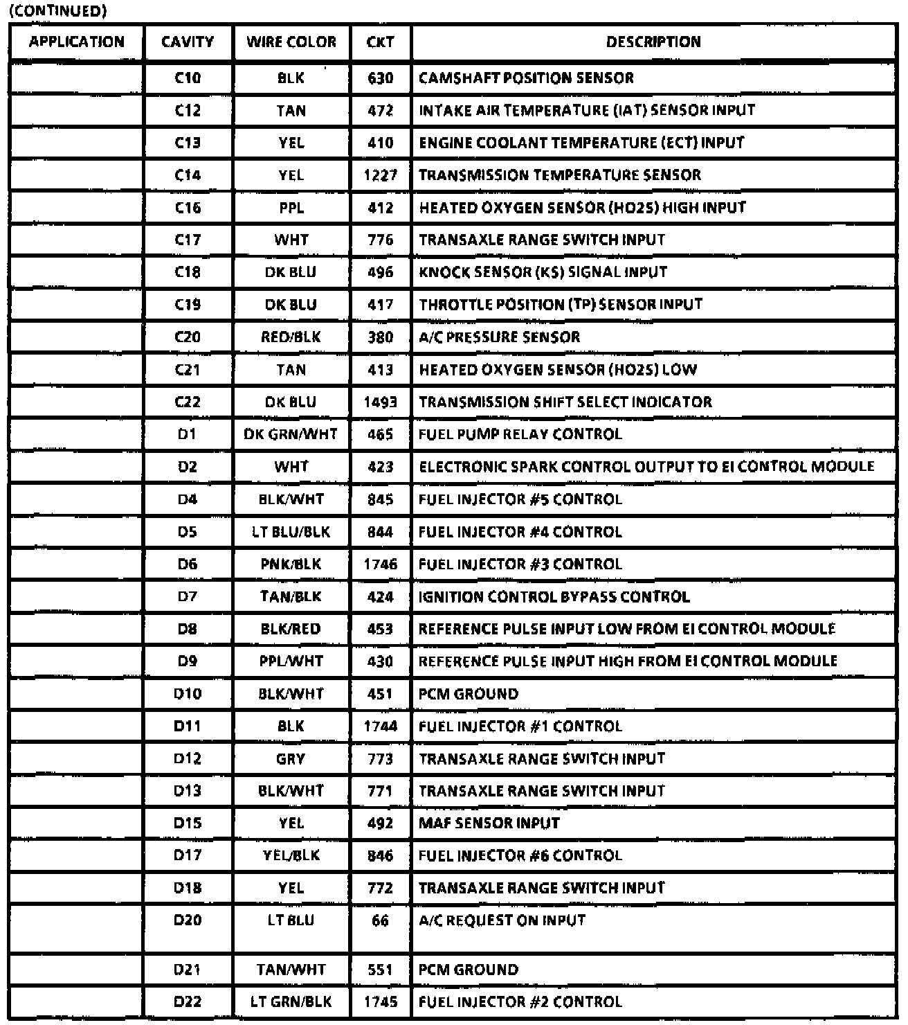 Harness Connector Face - Part 2 of 3:
