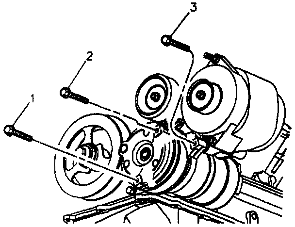 5. Bolts from compressor and engine block. (Leaving bracket attached to compressor.).