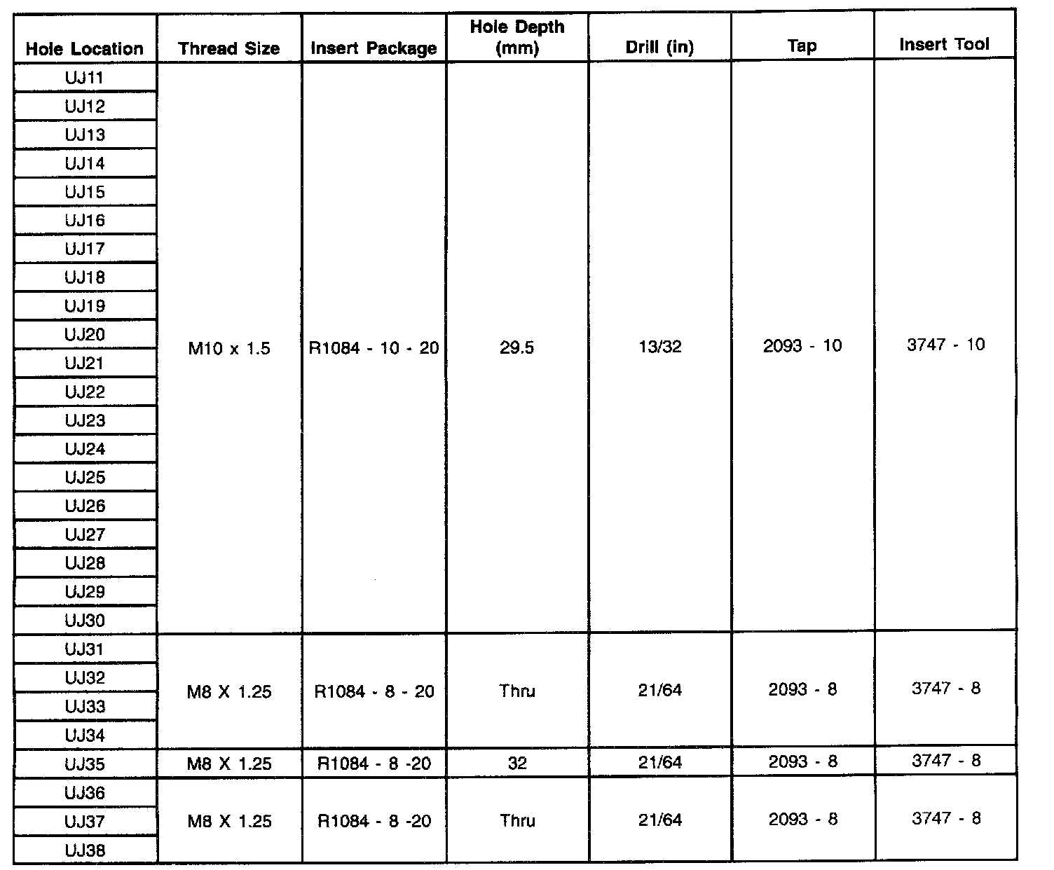 Thread Repair Specifications
