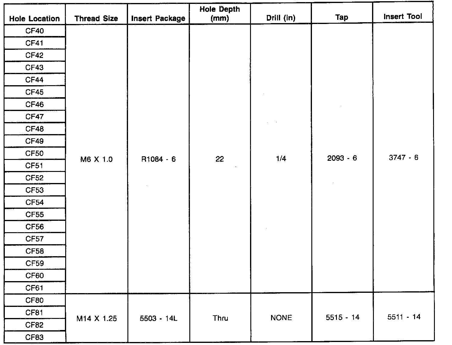 Thread Repair Specifications