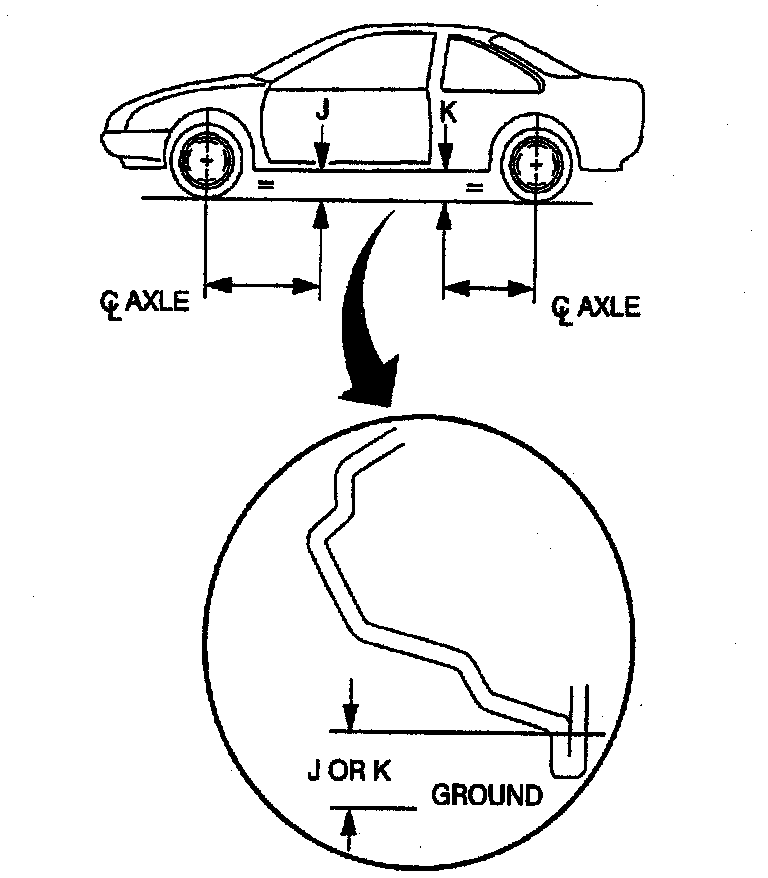 The Z height is measured from the lower control arm center of rear bushing bolt and the lowest inboard point on the ball joint.