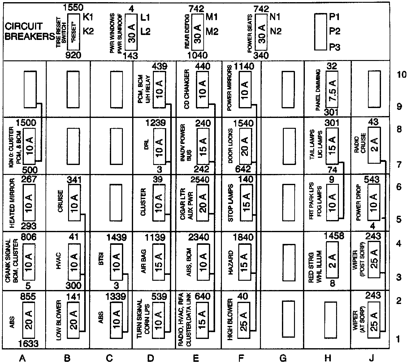 Fuse Block Details Schematics: Instrument Panel Fuse Block: