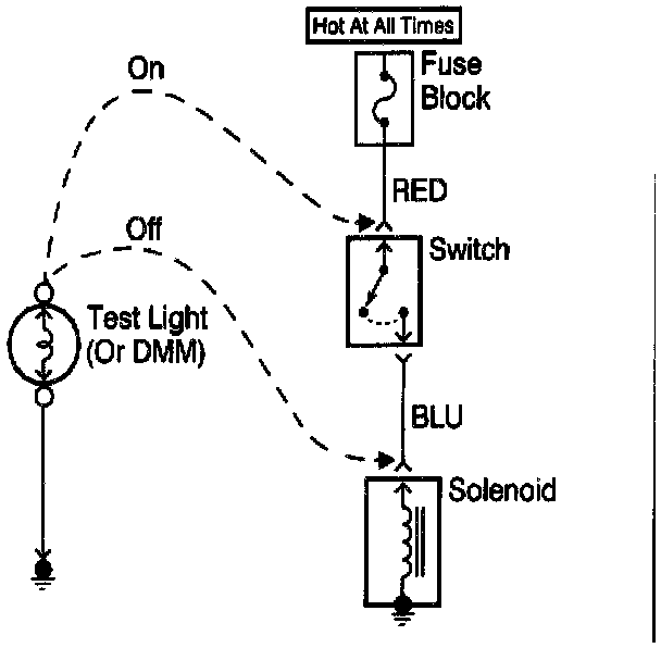 4. If the test light is not self-powered connect the other lead to a battery positive voltage source.