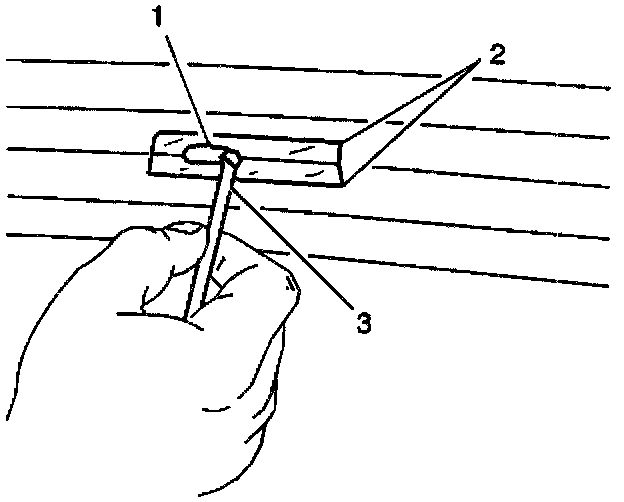 ^ Mark the grid line break (2) on the outside of the rear window with a grease pencil.