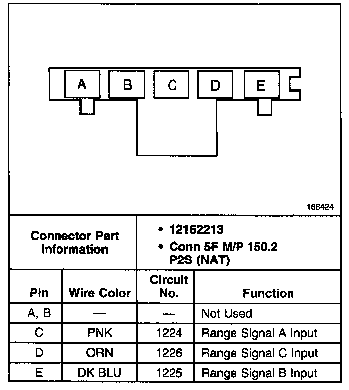 Automatic Transmission Fluid Pressure (TFP) Manual Valve Position Switch Connector. Wiring Harness Side