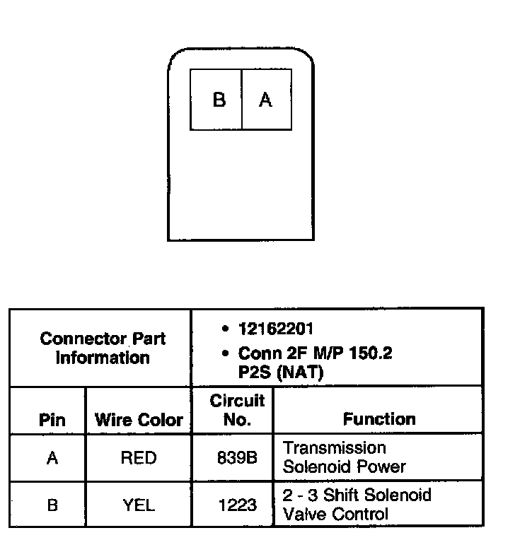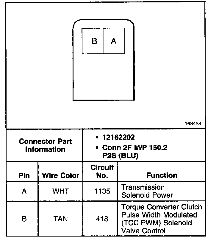 Torque Converter Clutch Pulse Width Modulated (TCC PWM) Solenoid Valve Connector, Wiring Harness Side