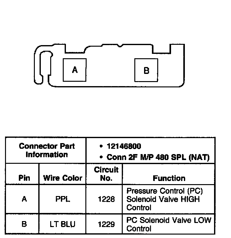 Pressure Control (PC) Solenoid Valve Connector, Wiring Harness Side