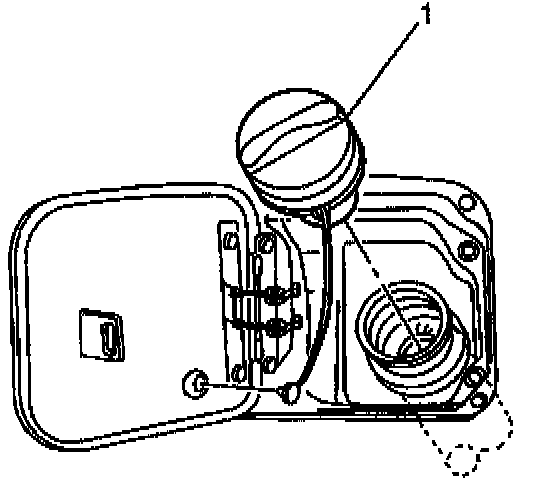 8. Add fuel and install the fuel tank filler pipe cap (1).
