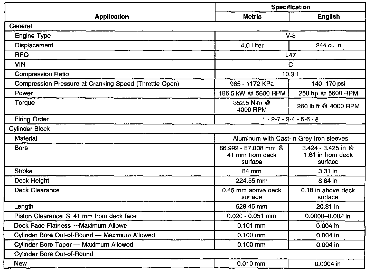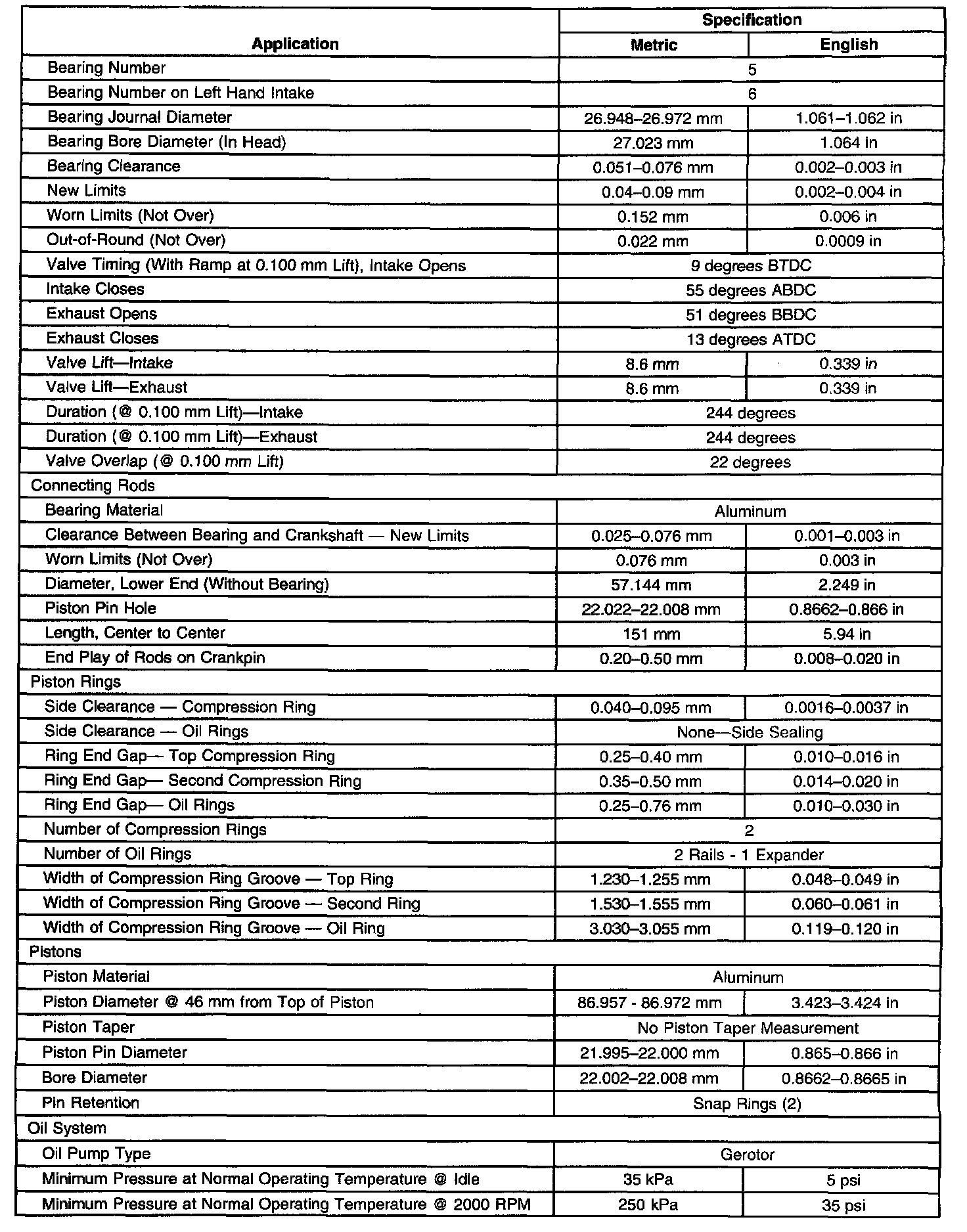 Engine Mechanical Specifications