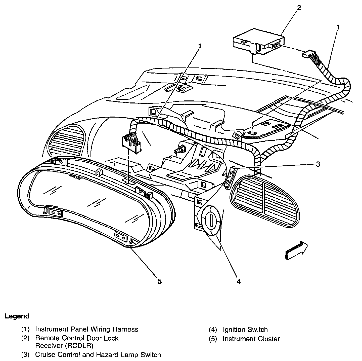 RCDLR, Cruise Control And Hazard Lamp Switch, Ignition Switch, And Instrument Cluter - LH Side Of Instrument Panel: