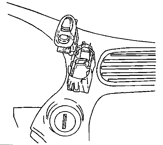 6. Remove the hazard warning and cruise control switch bezel from the instrument panel trim pad by using a small flat-bladed tool to the release retainers.