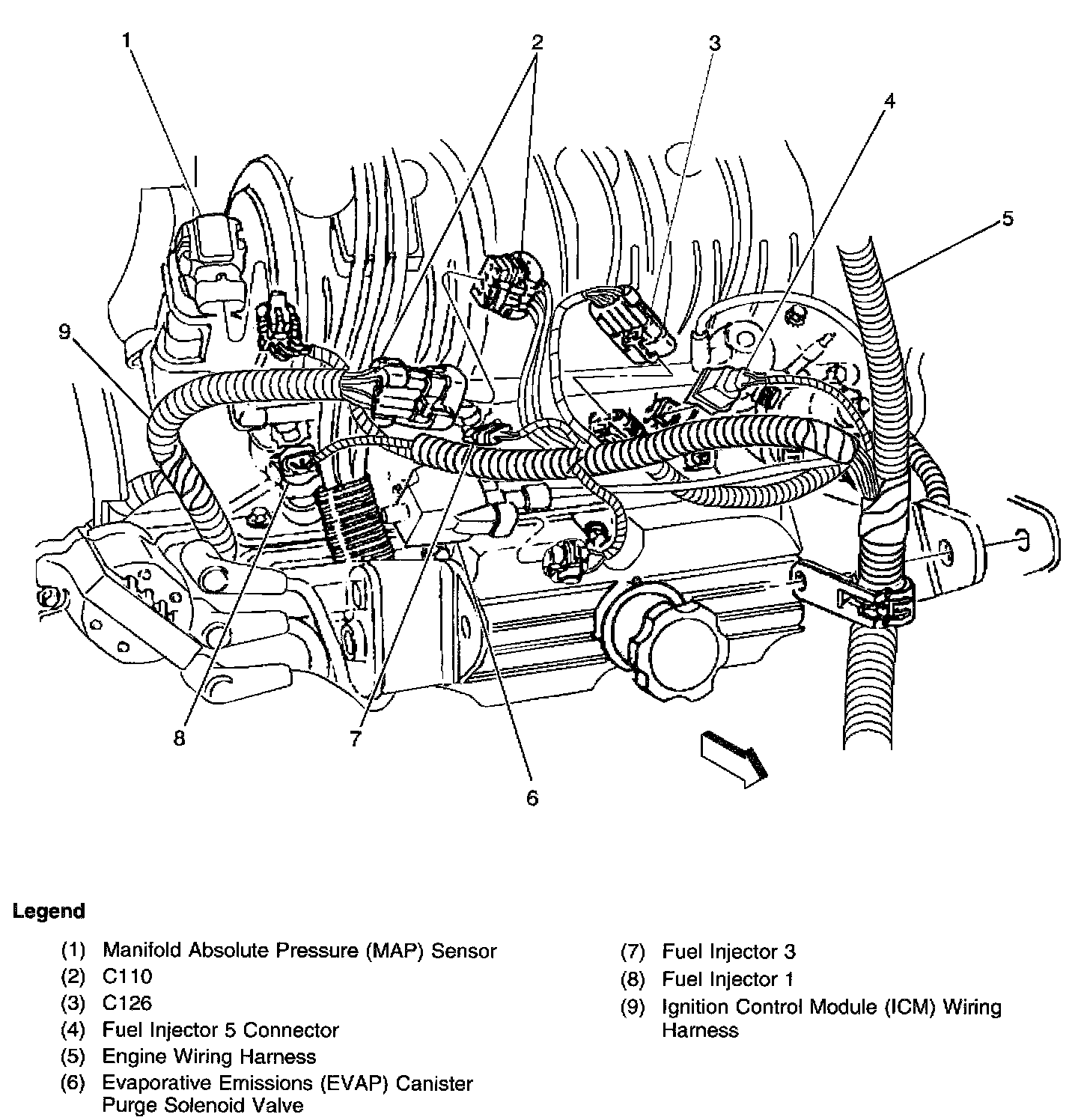 Top Front Of Engine: