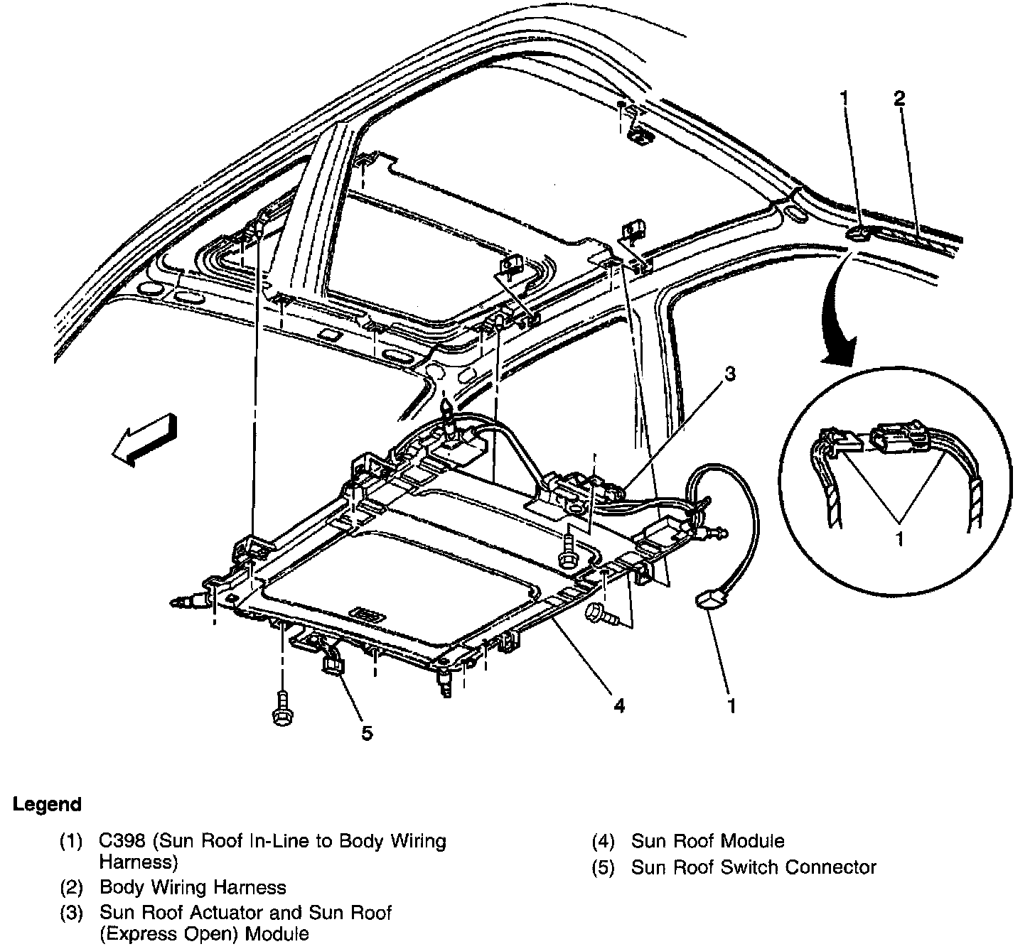 Right rear corner of the sunroof module (W/ RPO CF5 Only)