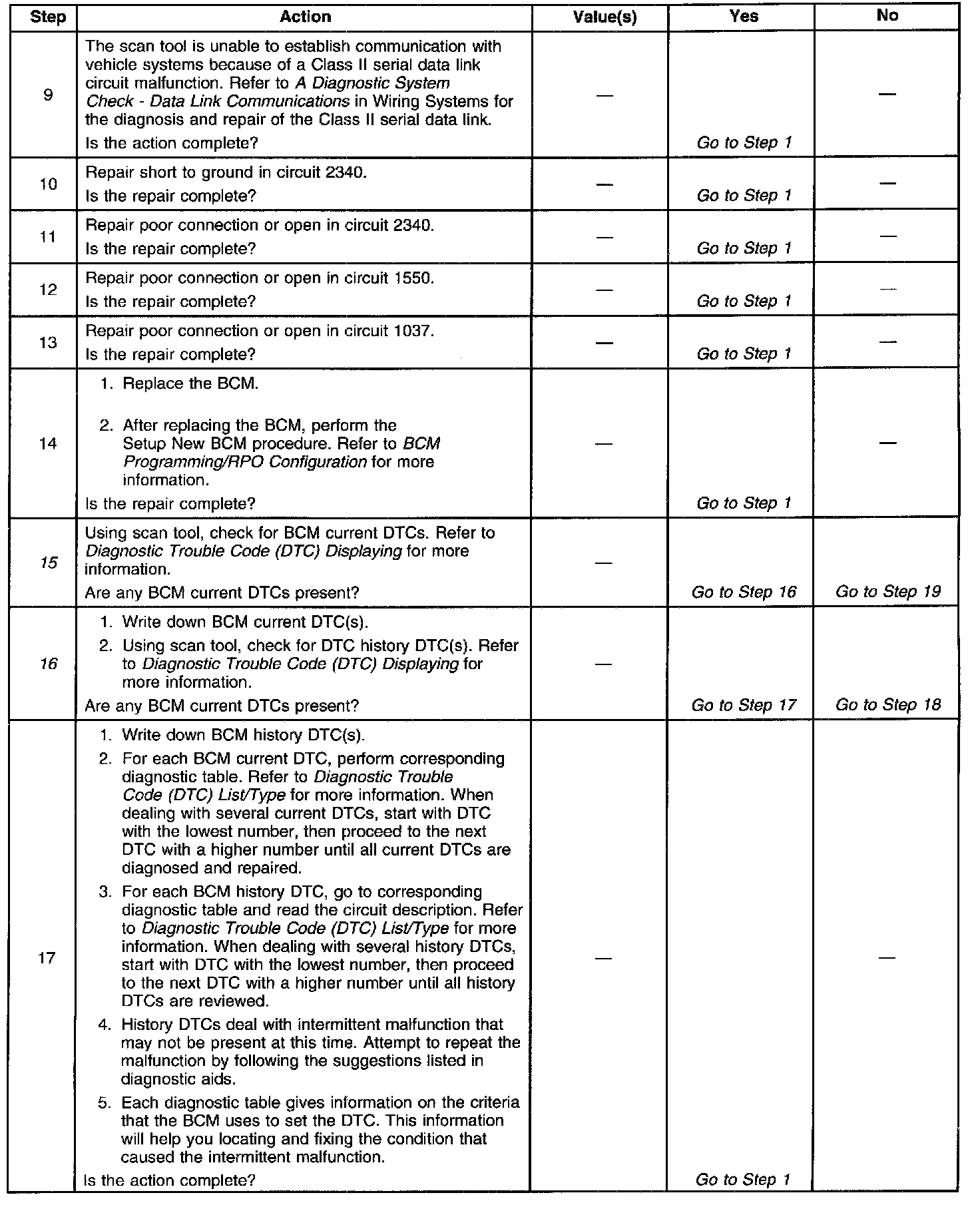 The number(s) below refer to the step number(s) on the diagnostic table.