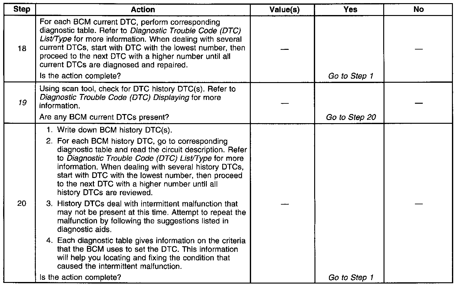 16. Checks for BCM history DTCs stored in memory.