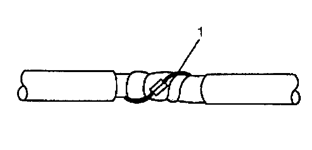 1. Remove the outer jacket (1). Use care not to cut into the drain wire of the mylar tape.