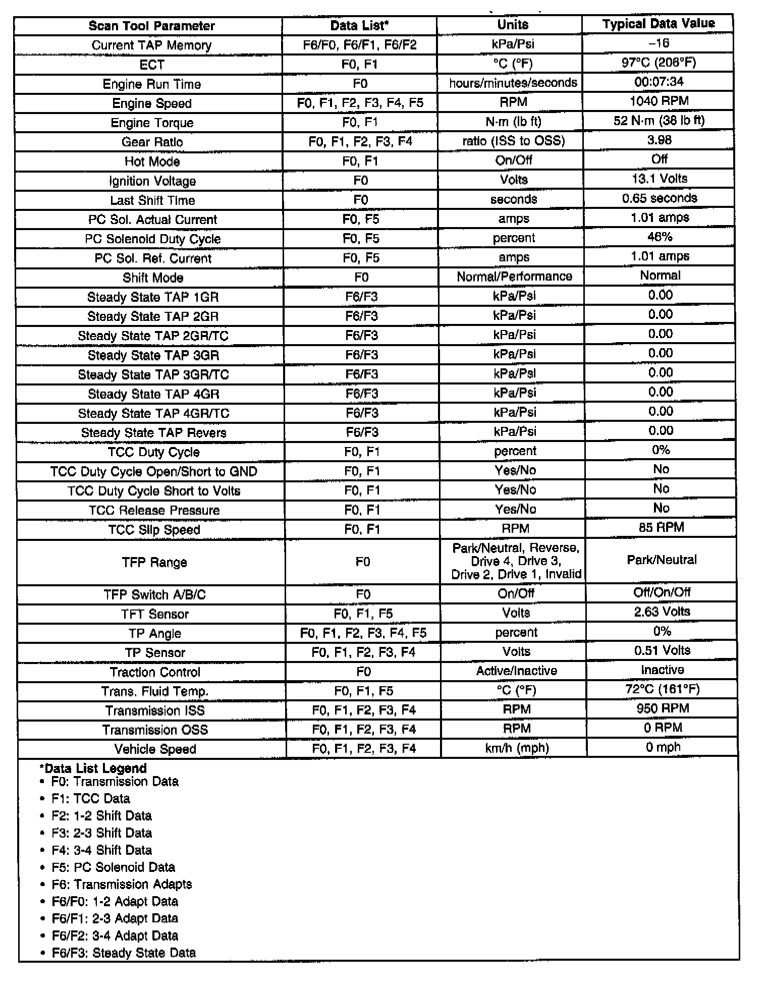 Transmission Scan Tool Data Values
