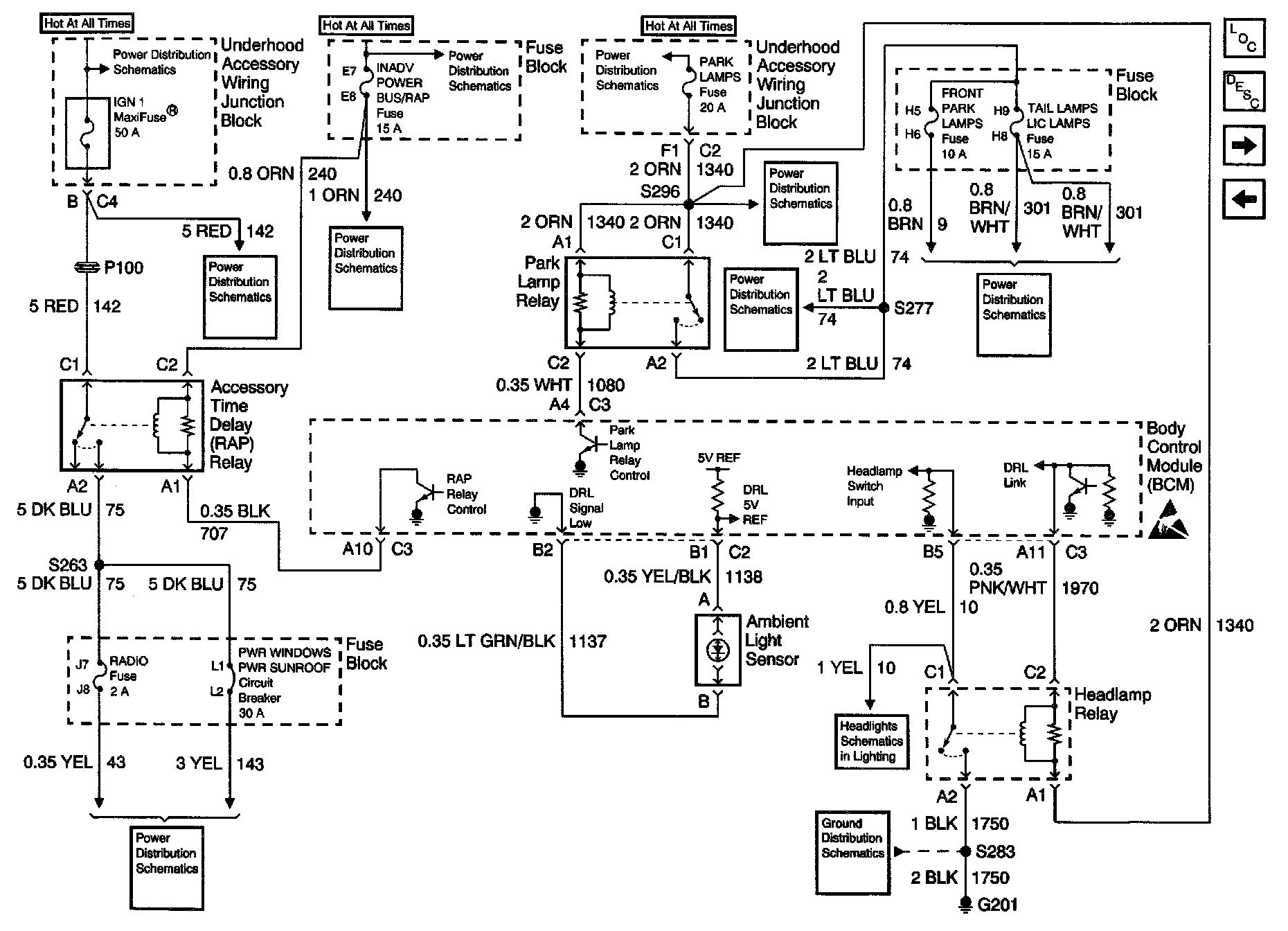 Body Control Module Schematics: RAP Relay, Park Lamp Relay, Headlamp Relay And Ambient Light Sensor: