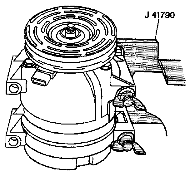 2. Clamp the compressor holding fixture, J 41790 in a vise and attach the compressor to the J 41790.