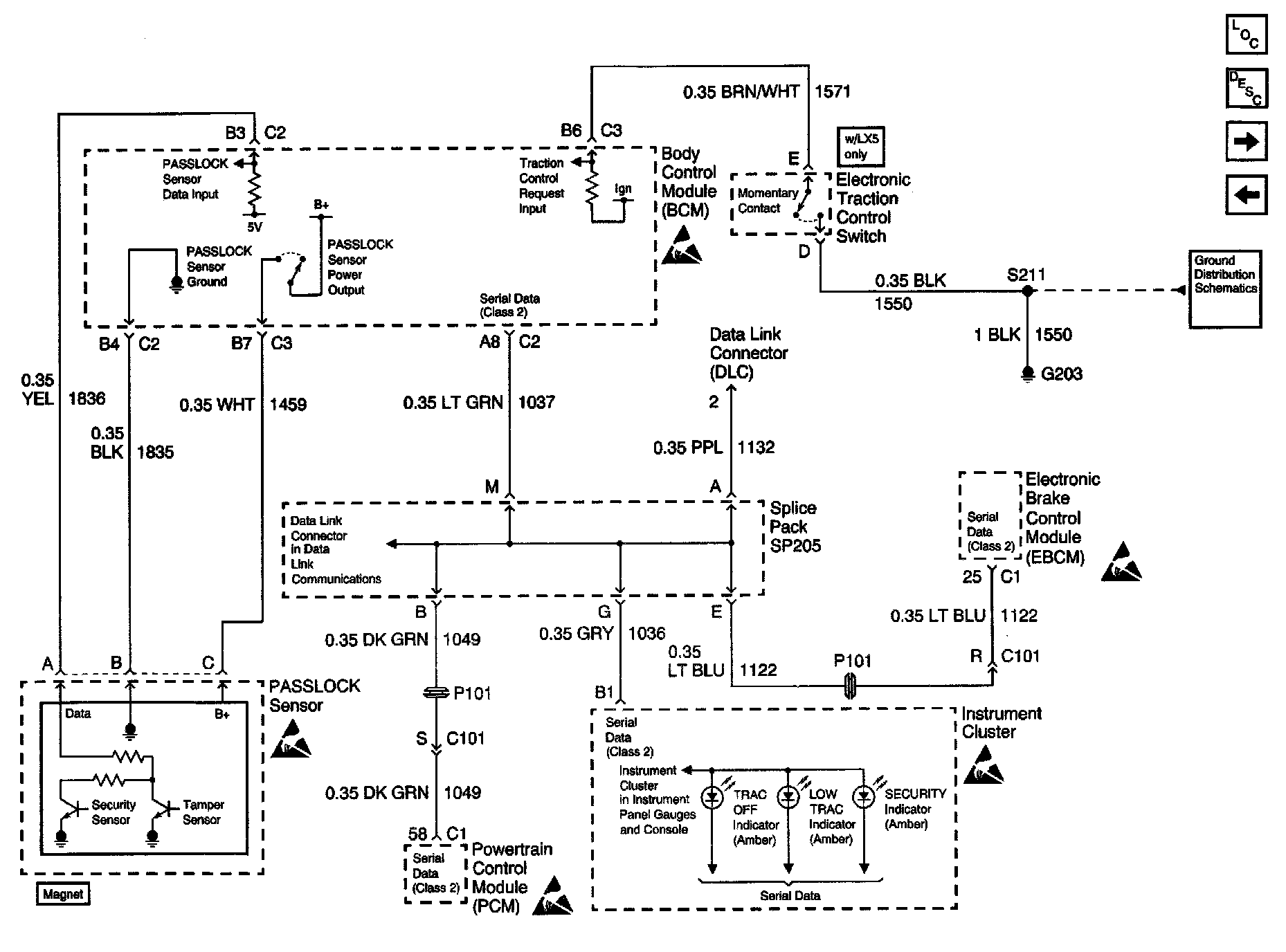 Body Control Module Schematics: PASSLOCK Sensor, SP205 And ETC Switch: