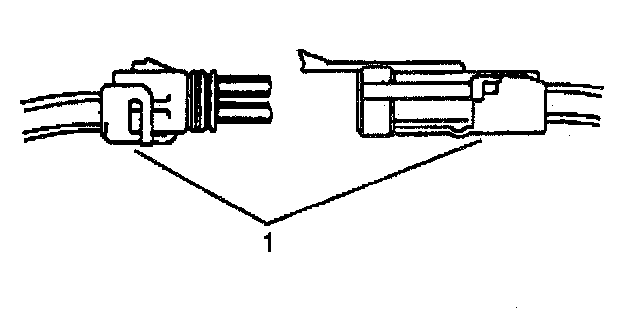 ^ Insert the Weather Pack (R) terminal removal tool into the front (mating end) of the connector cavity until it rests on the cavity shoulder (1).