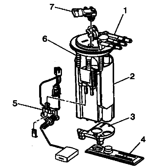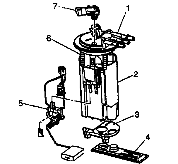 1. Install the new fuel level sensor assembly (5) on to the fuel sender (2).